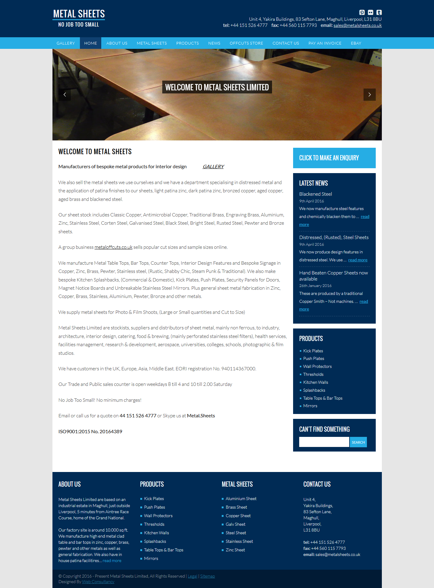 Metal Sheets came to us looking for a brand new website for their business. To aid with the design they sent us examples of sites they liked. Our web designers took the elements they liked and created this design.