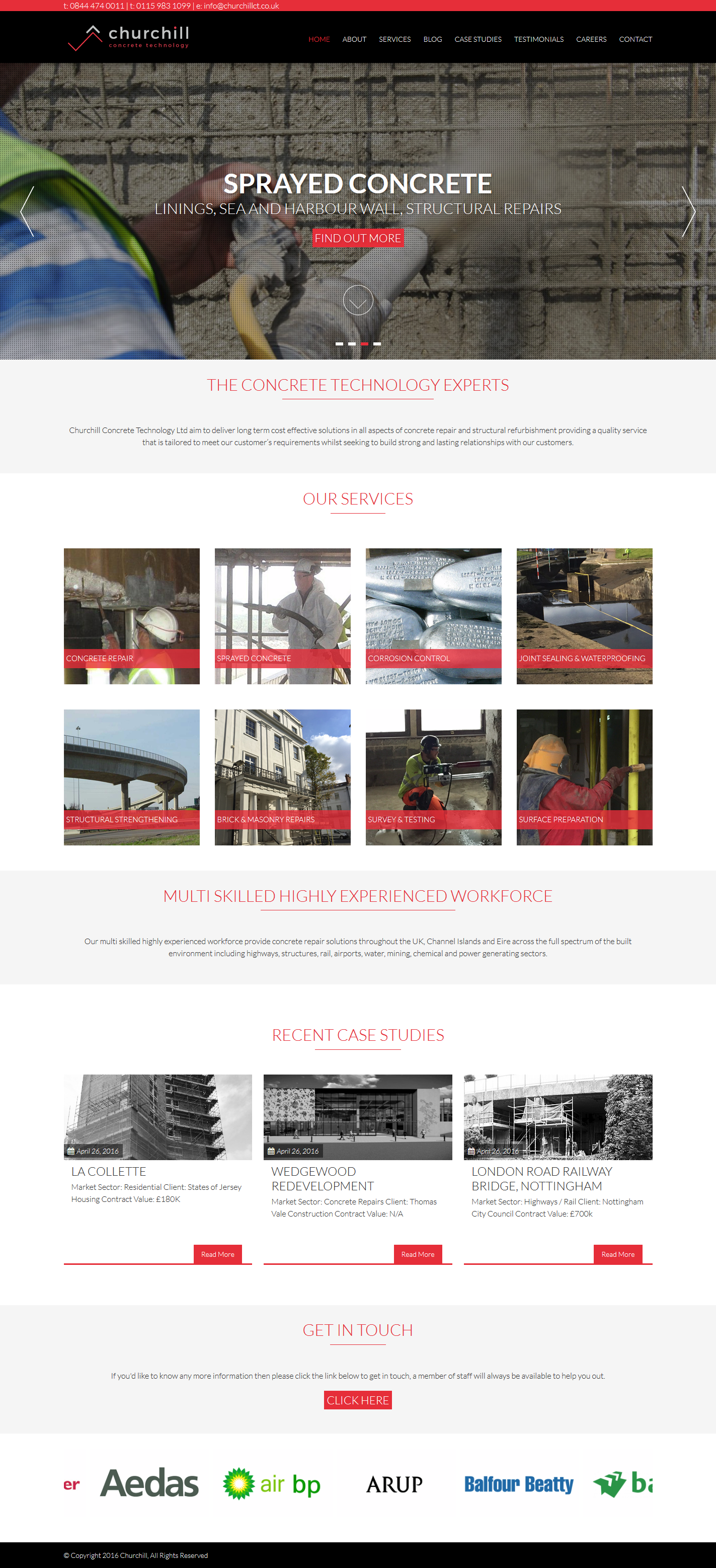 The Churchill Concrete Technology WordPress website we created is one of our favourite designs. It has plenty of high quality images on it, showcasing the array of services they provide. The design of the site displays these images prominently, ensuring they make the perfect impact.