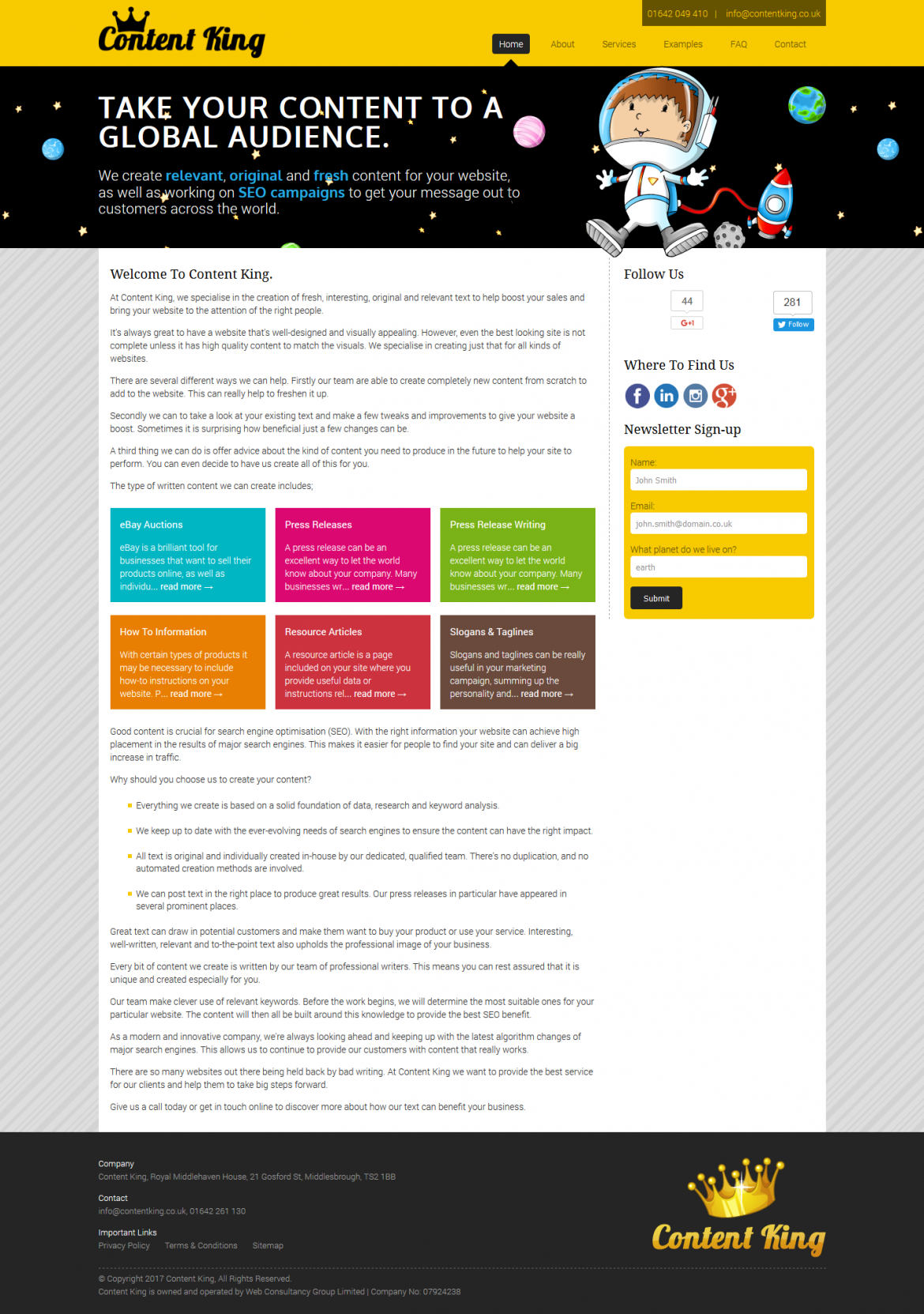 The website design allows Content King to showcase what they do best – create great content. With this in mind the site is designed to be simple to navigate so visitors can find out more about the various services on offer.