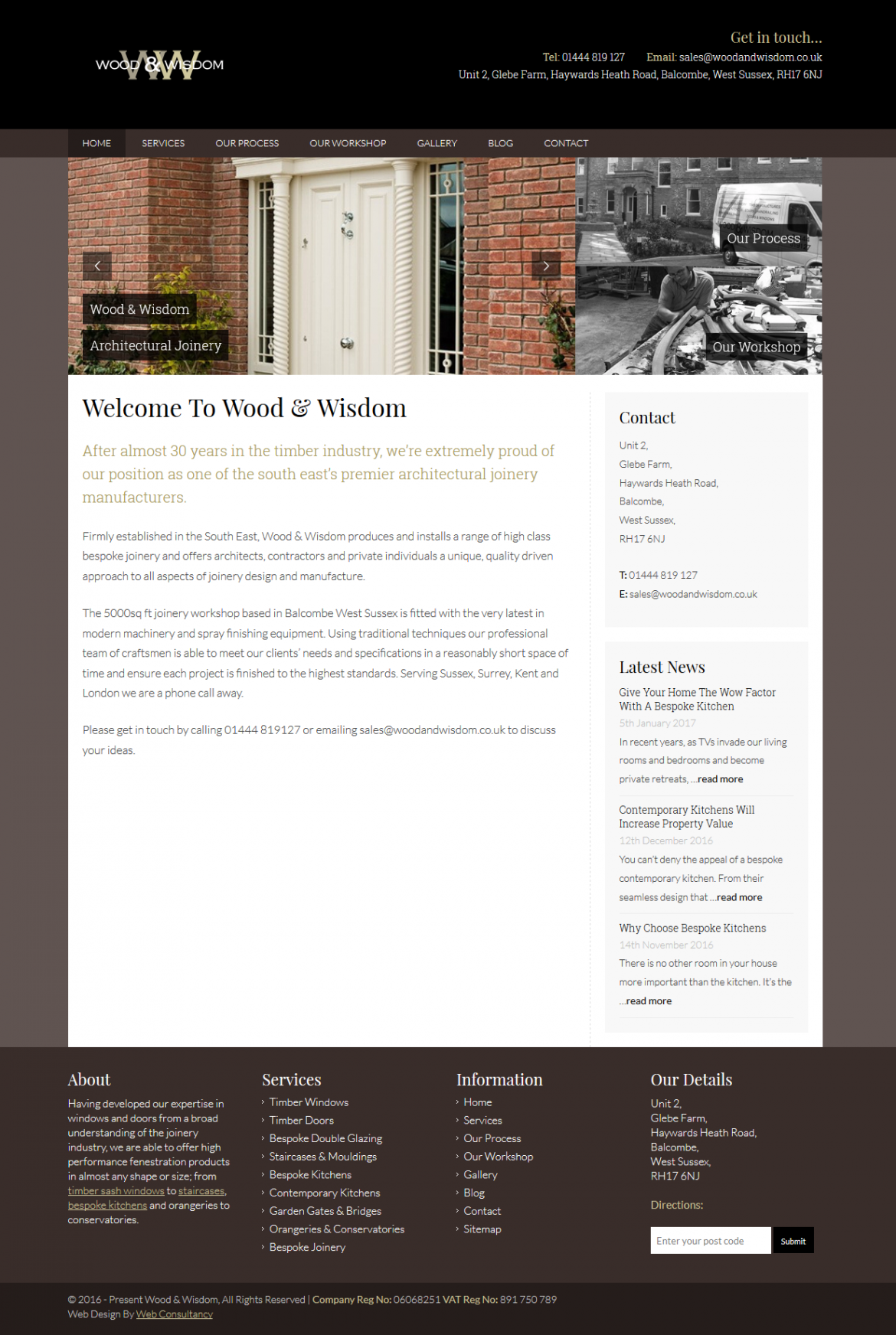 Wood & Wisdom had some unique requirements for their new website design. They wanted to reduce the clutter on pages to focus on the unique, dynamic design elements on pages. To help with this we cleaned up the design and simplified the navigation.