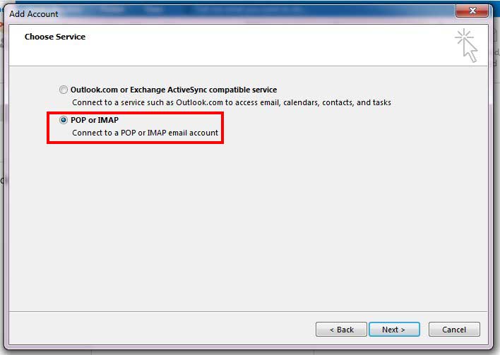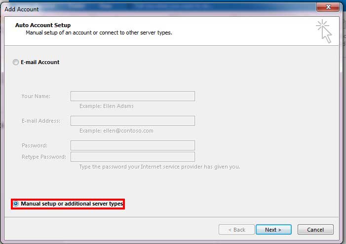After you have reached the “Add Account” window, you need to click the “manual setup or additional server types” button. Then, click next.