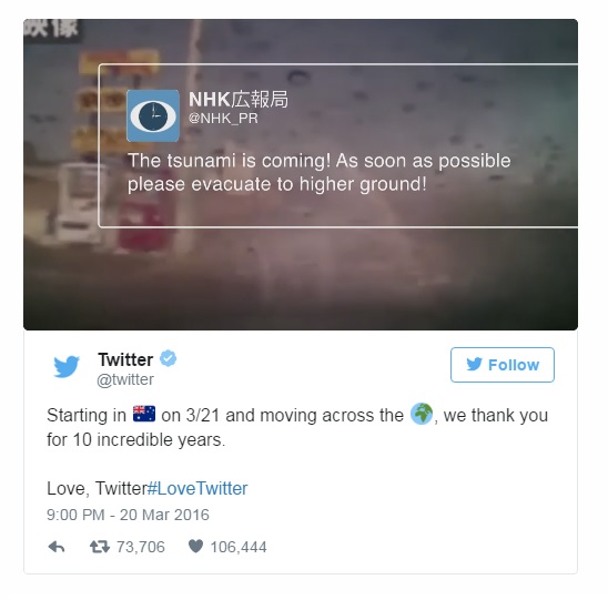 The video highlights one of Twitter’s main strengths, which is its role as a platform for breaking news stories. From the World Cup to the Oscars to the 2011 Japanese tsunami to the death of Nelson Mandela, Twitter has provided a place for people to find out about the major news stories of the past decade as they are happening. Twitter has also played a role in activism and campaigns for change, used as a place for discussion and the sharing of information, while providing leaders with a useful resource to gauge public opinion on political matters such as the legalisation of gay marriage and a place where users can directly address influential people by tweeting at them.